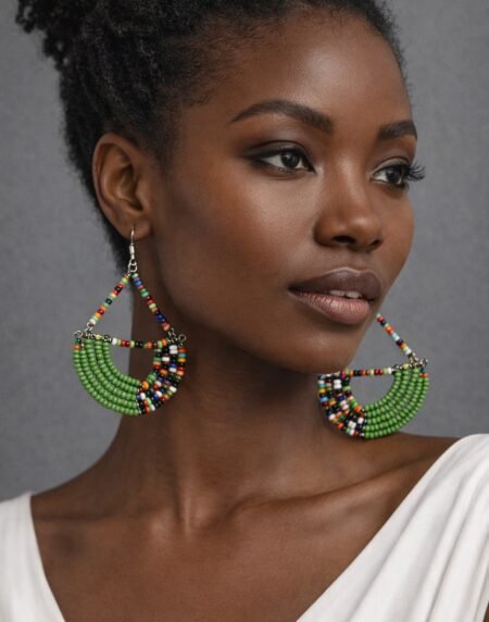 Handmade African beaded hoop earrings in vibrant multicolour design. Lightweight, bold, and perfect for cultural, casual, or statement styling.