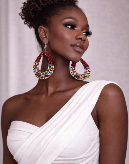 African Beaded Hoop Earrings – Multicolour Statement Design