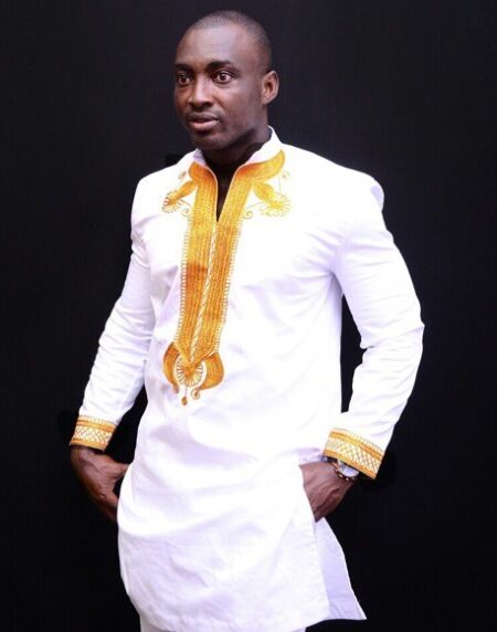 Afolabi Mens Black Polish Cotton Shirt With Gold Embroidery