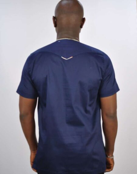 Navy Blue Polished Cotton & Kente Print shirt.