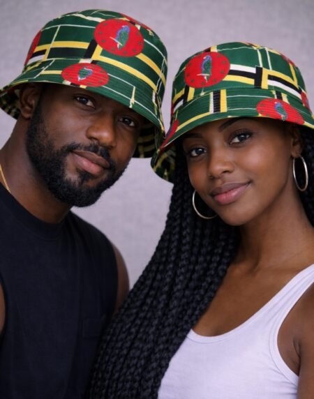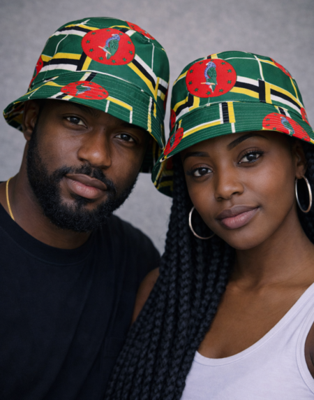 Dominica Reversible Bucket Hat with vibrant island-inspired colours. Lightweight, breathable, and unisex. Perfect for festivals, travel, and everyday style.