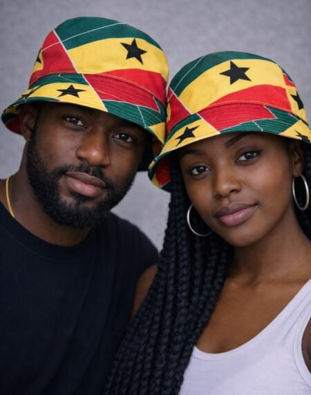 Ghana Reversible Bucket Hat with bold flag colours. Lightweight, comfortable, and unisex. Perfect for festivals, travel, and everyday cultural style.