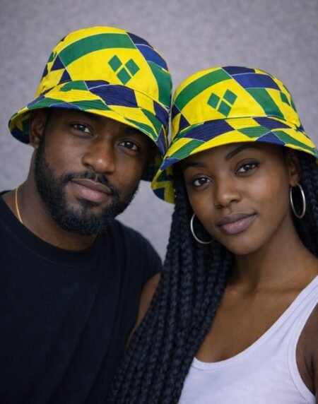Saint Vincent Reversible Bucket Hat featuring bold flag-inspired colours, a comfortable unisex fit, sun protection, and two stylish looks in one.