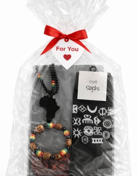 Men’s accessory gift set featuring heritage symbol socks, a beaded pendant necklace and braided bracelet. Stylish, meaningful and ready to gift.