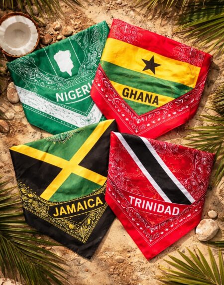 Trinidad Print Bandana – Bold, vibrant, and full of carnival spirit. Style it your way and carry the energy of Trinidad wherever you go.