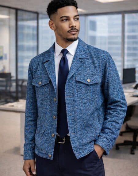 Heritage Blue Office Suit Jacket – Modern Cultural Tailoring for Confident Professionals