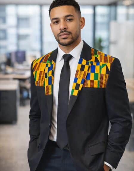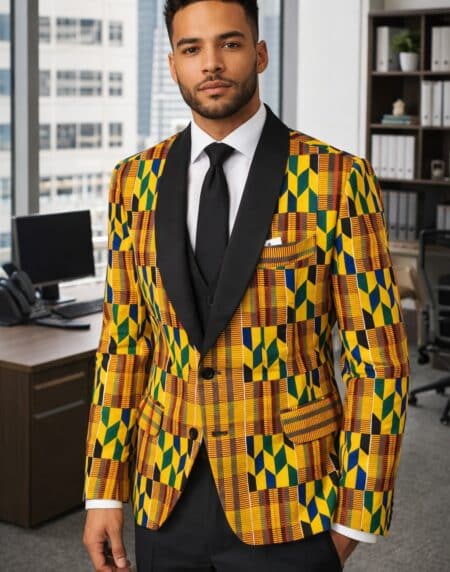 Heritage Kente executive jacket blending African-inspired design with tailored office style. Bold, refined, and perfect for modern professionals.