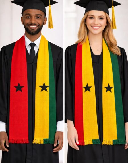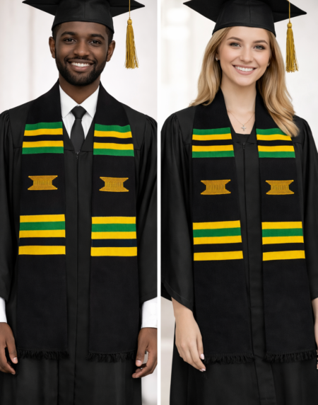 Add a blend of Africa and Jamaican style to your look with this Authentic Handwoven African Muffler or Stole. Hand woven in Ghana, this muffler is perfect for a special occasions such as a wedding or graduation ceremony!