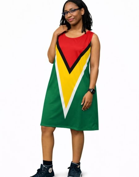 Guyana Flag Bodycon Dress with a sleeveless fit. Lightweight, breathable, and perfect for summer, festivals, and cultural events.