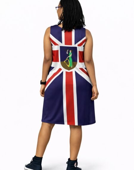 Montserrat Flag Dress with a sleeveless bodycon shift fit. Lightweight, breathable, and perfect for summer and cultural events.