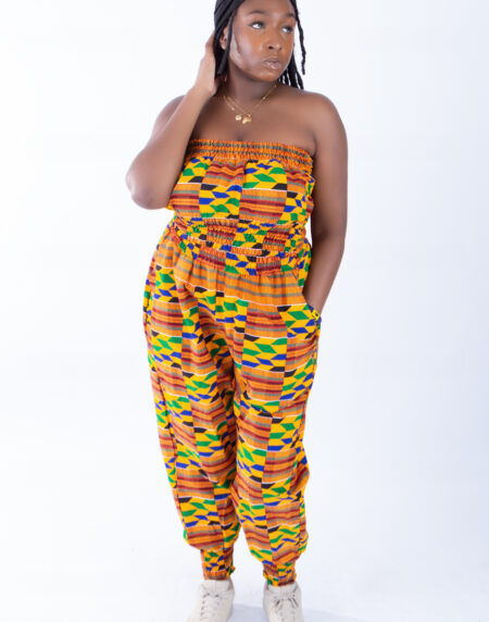 Merci Vibrant Kente Print Bandeau & Puff Trouser Set