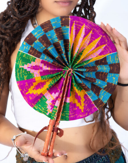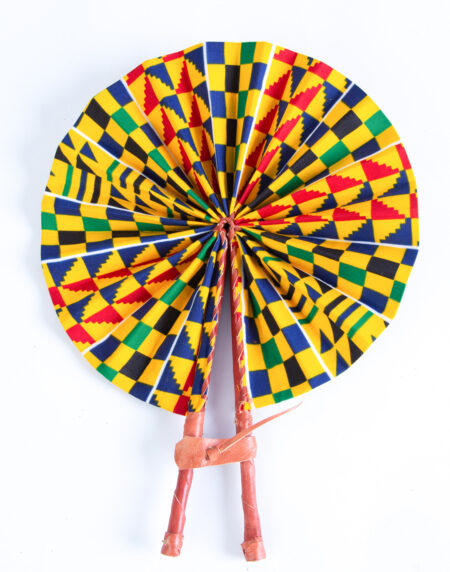 Introducing our Colourful Yellow Kente Print Round Closable Fan – a stunning blend of vibrant design and functional elegance.