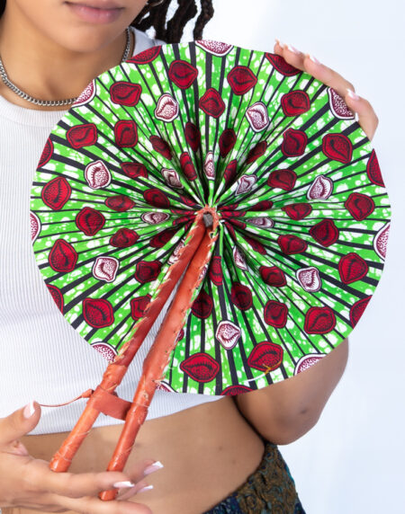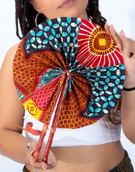 Introducing our Vibrant Red Abstract Ankara Print Round Closable Fan – a stunning blend of vibrant design and functional elegance.