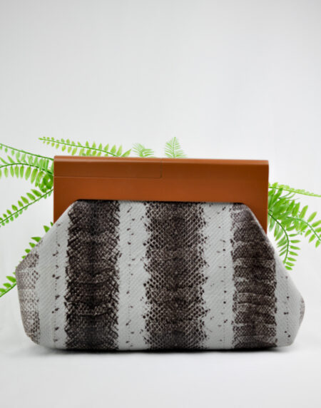 Introducing the Dusa Oye Glossy Snake Design African Clutch – a captivating fusion of exotic allure and contemporary glamour. This is an exceptional clutch.