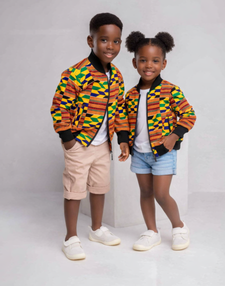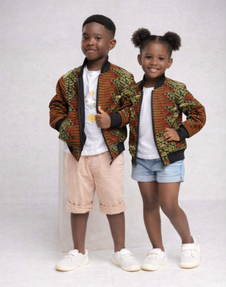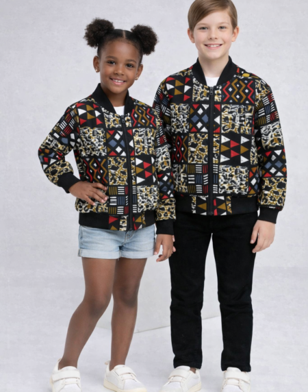 Your child is sure to be the best dressed in this stylish Bomber Jacket with the African Ankara fusion.It is fully lined and has a warm. It also features two pockets and a strong zip front !