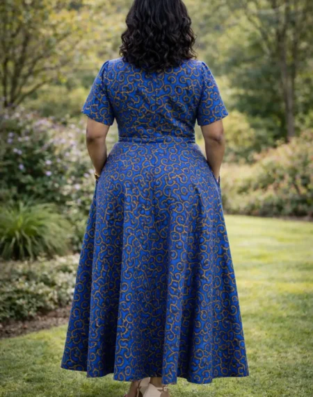 Embrace grace, comfort, and cultural flair with this Elegant Blue African Print Maxi Dress, designed to make a lasting impression.