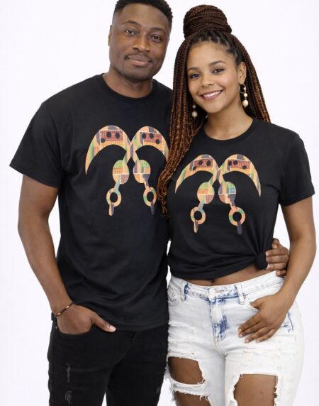 African Adinkra Unisex t-shirt with printed Kent design . Ideal over jeans, shorts or a skirt.