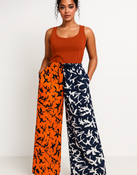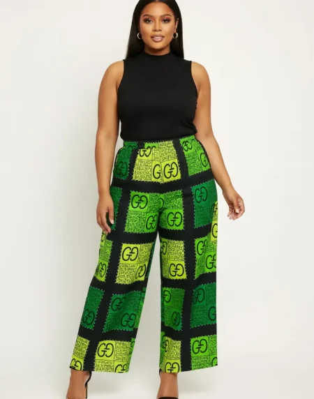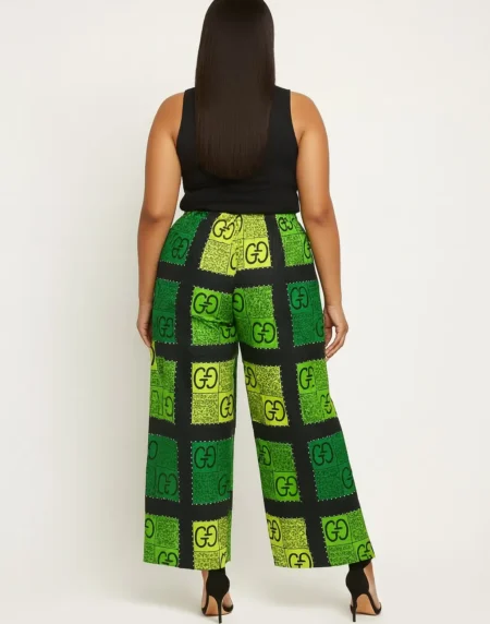 Stylish Ankara Palazzo Pants with a high waist and wide-leg fit. Vibrant African print, comfortable, breathable, and perfect for casual, work or events.