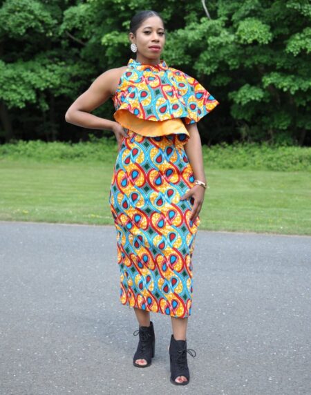 Introducing our stunning Nevaeh African Ankara Multi Occasion Dress. Featuring elegant of the shoulder neckline. In addition the dress has a beautiful bodycon fit, with our beautiful Ankara fabric and mermaid tail design. This dress is a true statement of style and cultural heritage. Embrace the beauty of African fashion