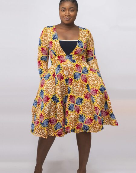 Our Kehinde African Ankara Bodycon Long Sleeved Elegant Dress is the perfect dress for that special occasion. With a bodycon fit to beautifully enhance any figure and illusion balloon sleeves for a unique look!