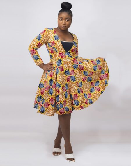 Taiwo Long-Sleeved Ankara Occasion Dress