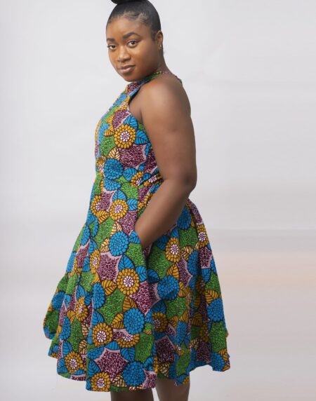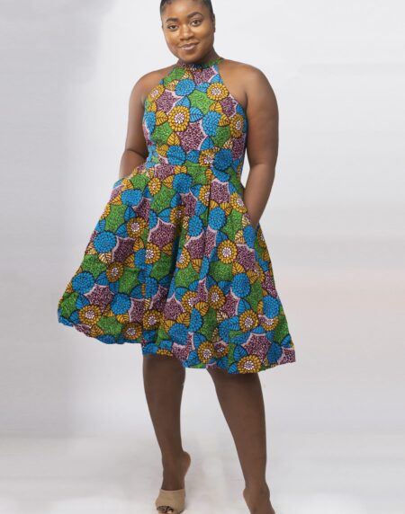 This Zola African Ankara Halterneck Skater Dress is perfect for that special occasion. Super comfortable and sleeveless with a beautiful halter neck. Features two side pockets!
