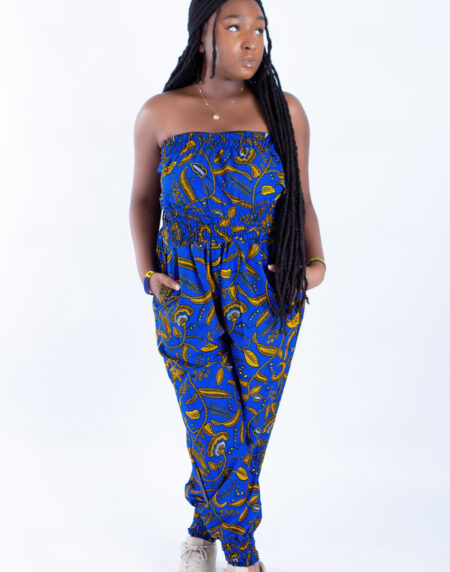 Merci Royal Blue Ankara Print Bandeau & Puff Trouser Set
