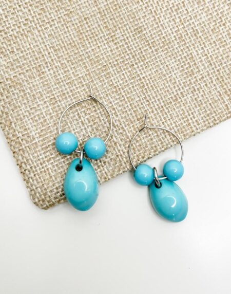 Bri Blue Cowrie Beads Dangle Drop Round Hoop Earrings