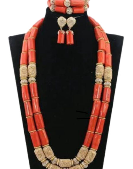 Introducing our Nia Nigerian Wedding Beaded Necklace, Bracelet, & Earrings, a regal ensemble that exudes elegance and cultural richness.