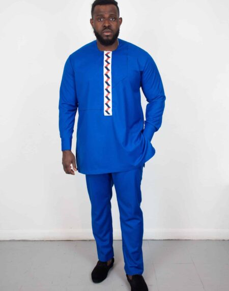 Elevate your style with our Mvula Blue Traditional Suit, a stunning combination of African heritage and modern fashion. Made from high-quality, hand-woven African fabric, this suit is a true masterpiece of craftsmanship.