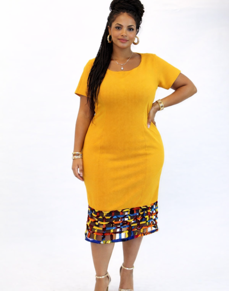 Looking for a unique African print midi? We have you covered with this vibrant yellow bodycon Ankara mesh dress. With a figure-hugging design, this midi dress can be custom made for any body shape and for a perfect, comfortable fit. The multi-coloured Ankara mesh illusion detail in a grid pattern