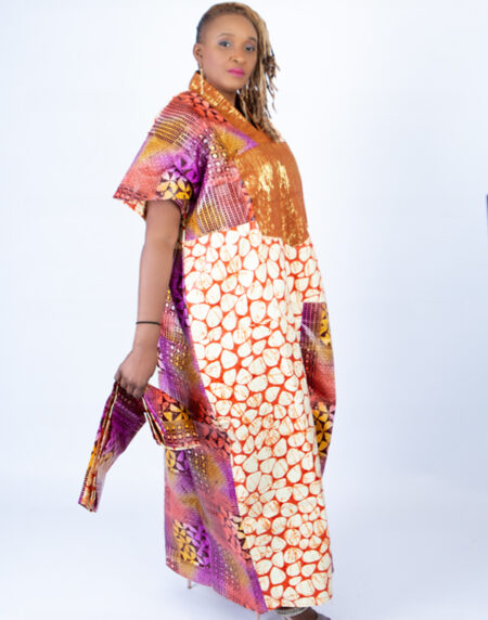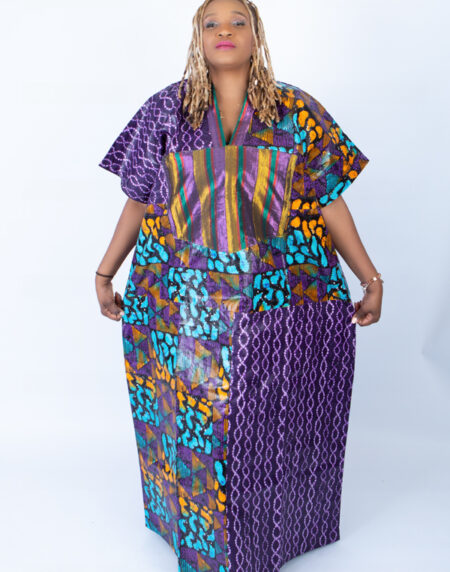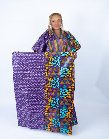 Adire Aso Oke blend Kaftan in Purple Vibrant Print