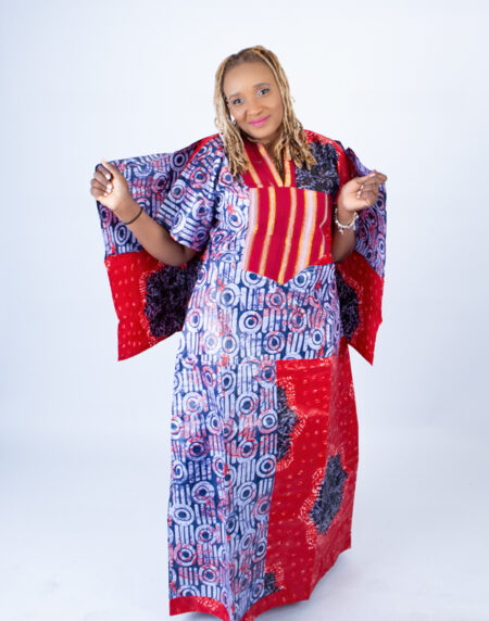 Adire Aso Oke blend Kaftan in Red Vibrant Print