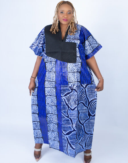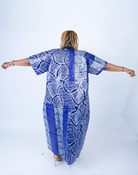 Adire Aso Oke blend Kaftan in Blue Vibrant Print