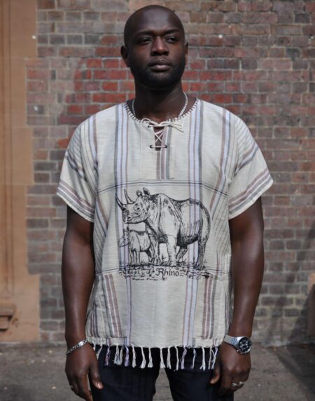 Kenyan African Rhino Tassel Hem Boho Shirt