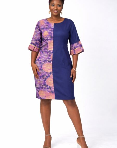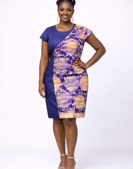 Tiwa Abstract Purple Pencil Knee Length Dress