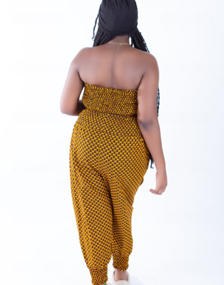 Merci Bandeau & Puff Trouser Set in Mustard Ankara Print