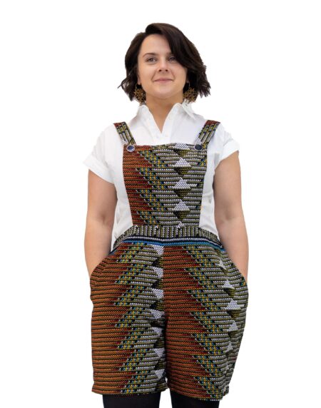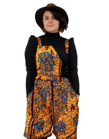 This Beautiful Bamidele African Ankara Pinafore Playsuit makes the perfect statement piece for your wardrobe with a beautiful geometric Print.