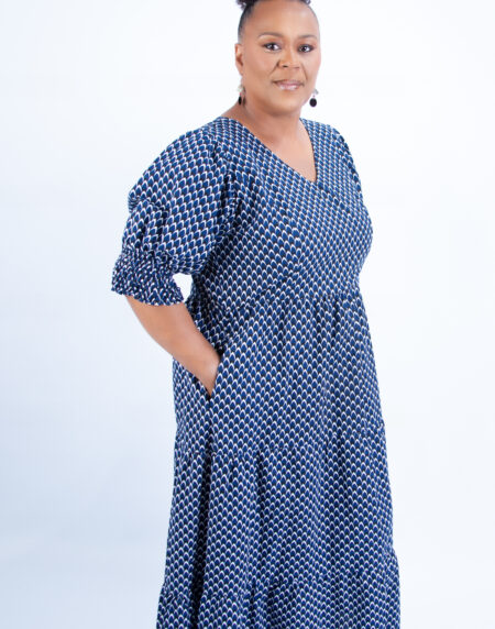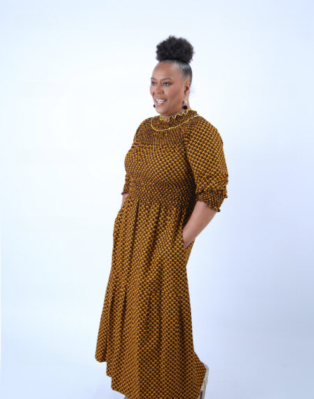 Introducing the Tawny V-Neck Ankara Patterned African Dress. An embodiment of African elegance and modern sophistication.
