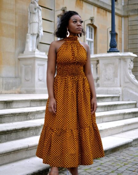 Denise Mustard Stunning Ankara High-neck Halter Maxi