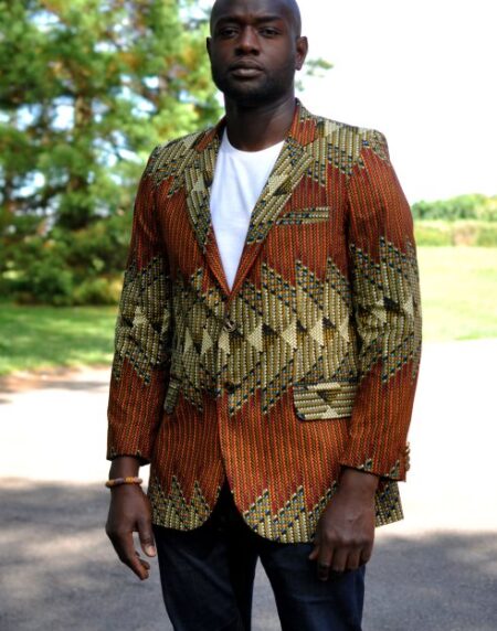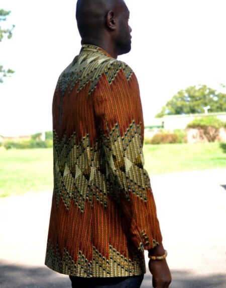 Whether you intend to dress up or dress down, this men's blazer in brown and green African Ankara print is a perfect addition to your wardrobe. Versatile and comfortable, you can wear this blazer for everyday wear or an occasion.