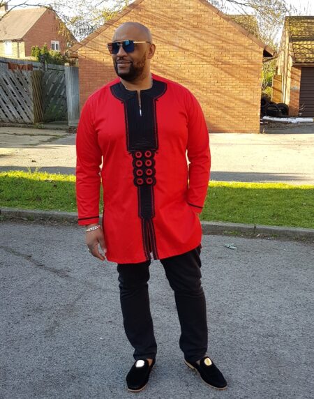 This attractive hand-made red and black African embroidered shirt features striking embroidery detail on the front and cuffs. Great for special occasions, religious ceremonies and traditional weddings. If you're feeling edgy why not rock it at your next party!