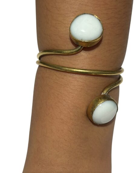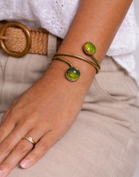 Adjustable Brass Bracelet with Resin Stone Accents