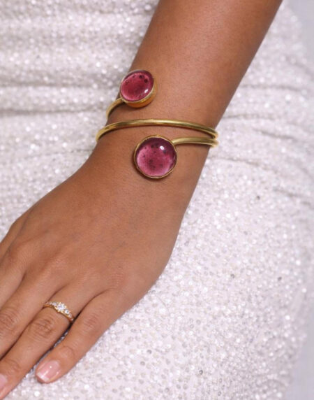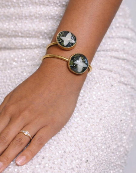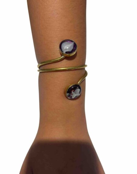 Elegant adjustable gold cuff bracelet with unique resin stone accents. A versatile, timeless accessory perfect for everyday wear or gifting.