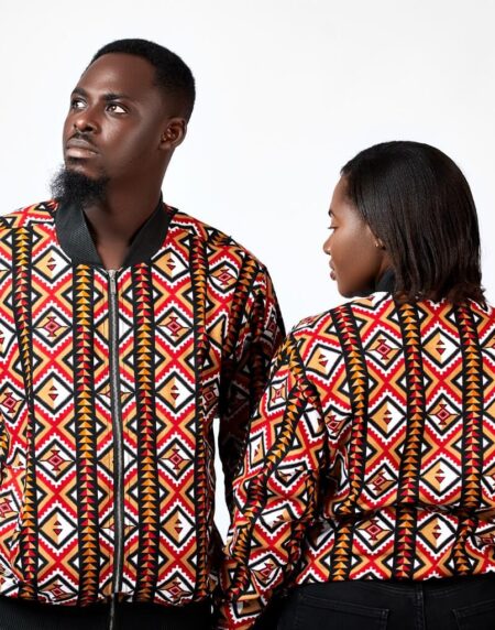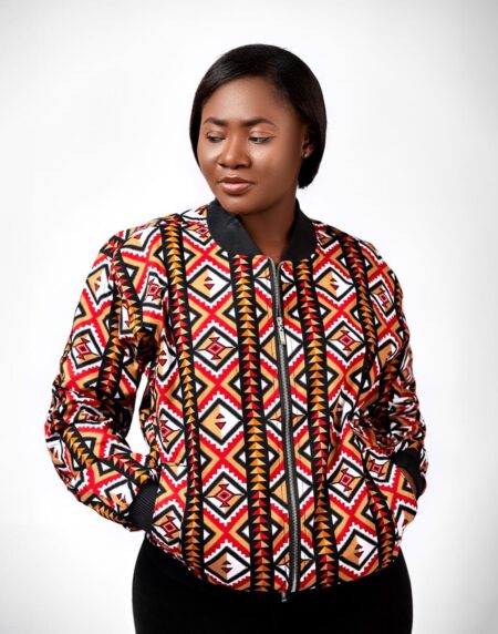 Brighten up your wardrobe with our ladies Kimani African Kente Print Bomber Jacket. Perfect for any occasion or everyday wear. Features cosy lining and two pockets for comfort and convenience.