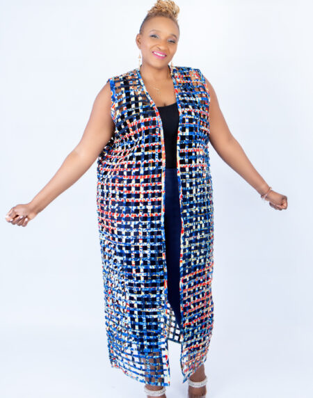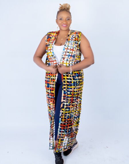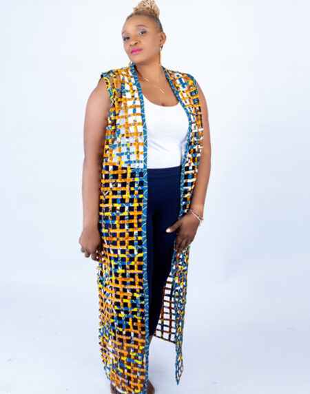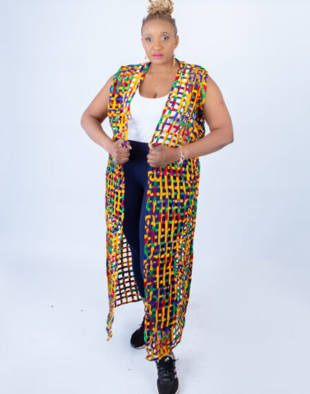 Multi-colour Ada Ankara Weaved Maxi Sleeveless Kimono