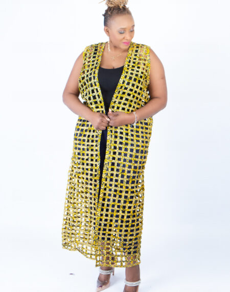 Yellow Ada Ankara Weaved Full Length Sleeveless Kimono
