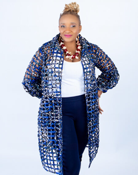 Blue Multi Ade Ankara Weaved Full Length Sleeveless Kimono