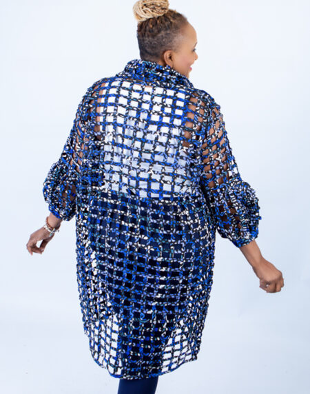 Tiana Deep Blue Ankara Weaved Long Puff Sleeve Overthrow