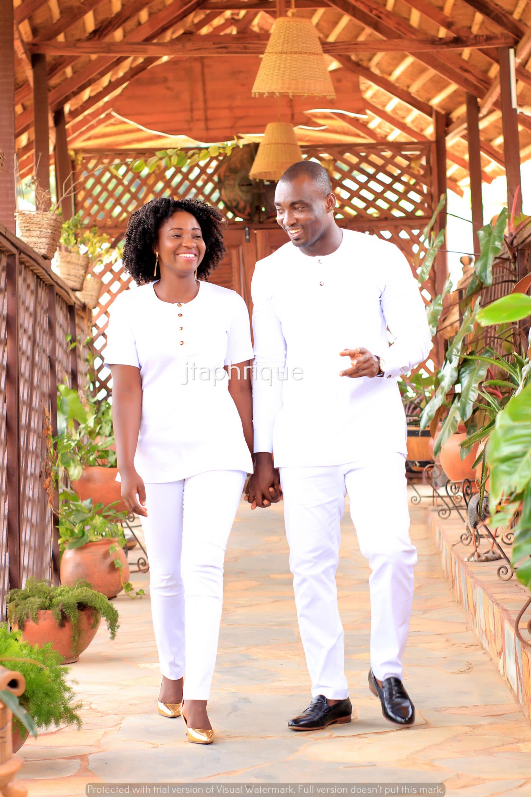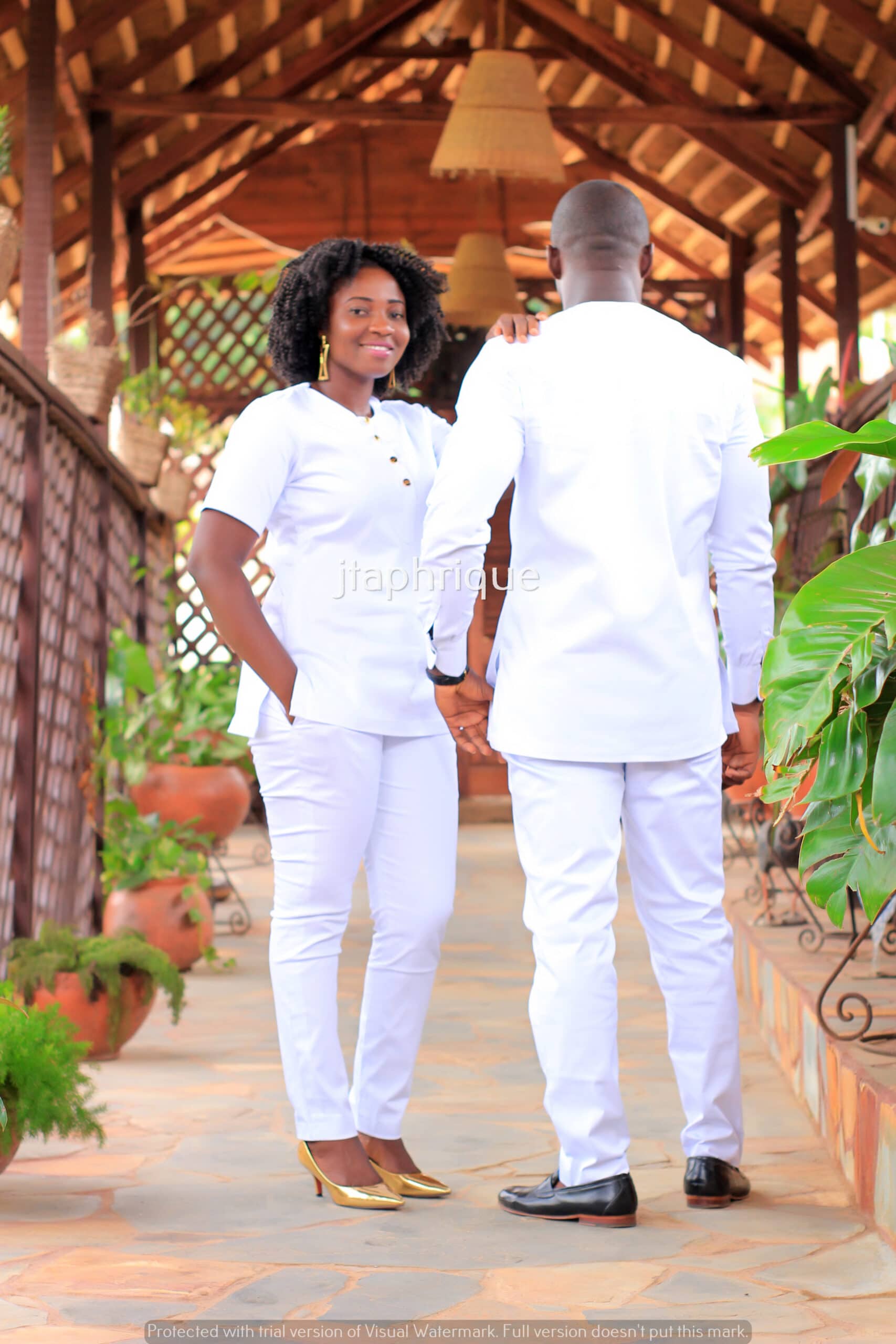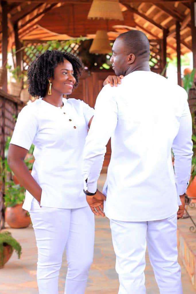 See our matching traditional African outfit for couples in white and gold.